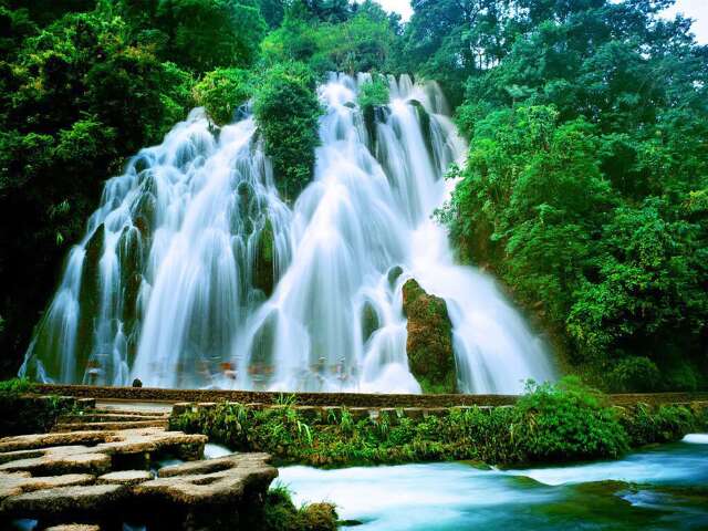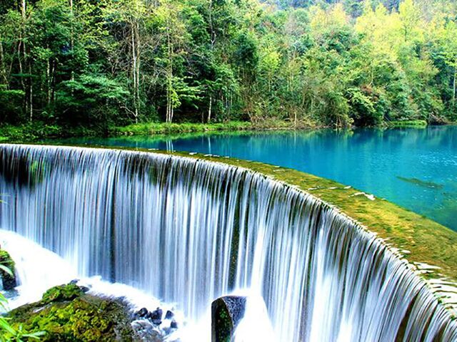 13:30 荔波小七孔景区 · 水上森林 · 68级跌水瀑布 · 鸳鸯湖 · 拉雅瀑布 · 卧龙潭